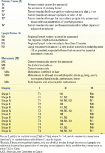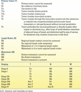 مرحلهبندی ویرایش هشتم کمیته مشترک سرطان آمریکا (AJCC) برای آدنوکارسینوم روده کوچک در جدول 10.1 نشان داده شده است.
