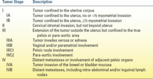 طرح مرحلهبندی جراحی برای سرطان آندومتر در جدول 20.13 شرح داده شده است. طرح درجهبندی FIGO بر اساس معماری و ظاهر هستهای است (جدول 20.14).