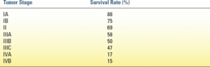 | جدول20.15میزان بقای پنج ساله برای بیماران مبتلا به سرطان آندومتر، بر اساس مرحله تومور |