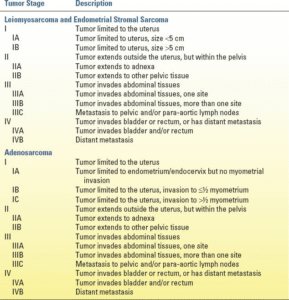 در سال 2009، FIGO معیارهای مرحلهبندی جراحی را به طور خاص برای سارکومهای رحمی تعریف کرد تا رفتار بالینی آن را بهتر منعکس کند (جدول 20.17).