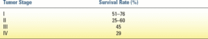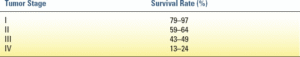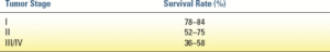 | جدول20.18میزان بقای پنج ساله برای لیومیوسارکومهای رحمی، بر اساس مرحله تومور |
