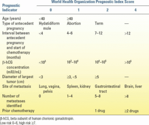 | جدول20.20 فدراسیون بینالمللی زنان و زایمان، مرحلهبندی بیماری تروفوبلاستیک بارداری |