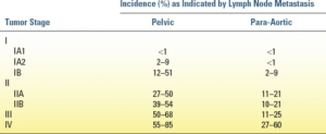 | جدول20.23 میزان بروز متاستاز غدد لنفاوی سرطان دهانه رحم (جراحی یا بر اساس تصویربرداری)، بر اساس مرحله تومور |