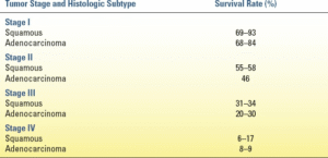 | جدول20.24 میزان بقای پنج ساله برای بیماران مبتلا به سرطان دهانه رحم، بر اساس مرحله تومور و زیرگروه بافتشناسی |