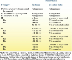 | جدول3.1تعریف دسته T – ویرایش هشتم AJCC سیستم مرحلهبندی ملانوما |