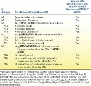| جدول 3.2 تعریف دسته N—نسخه هشتم AJCC سیستم مرحله بندی ملانوما |
