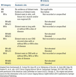 | جدول 3.3تعریف دسته M—نسخه هشتم AJCC سیستم مرحله بندی ملانوما |